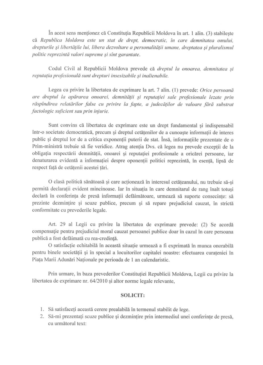Primarul a menționat că dacă Natalia Gavrilița și Sergiu Litvinenco nu vor dezminți afirmațiile, atunci el va cere despăgubiri.