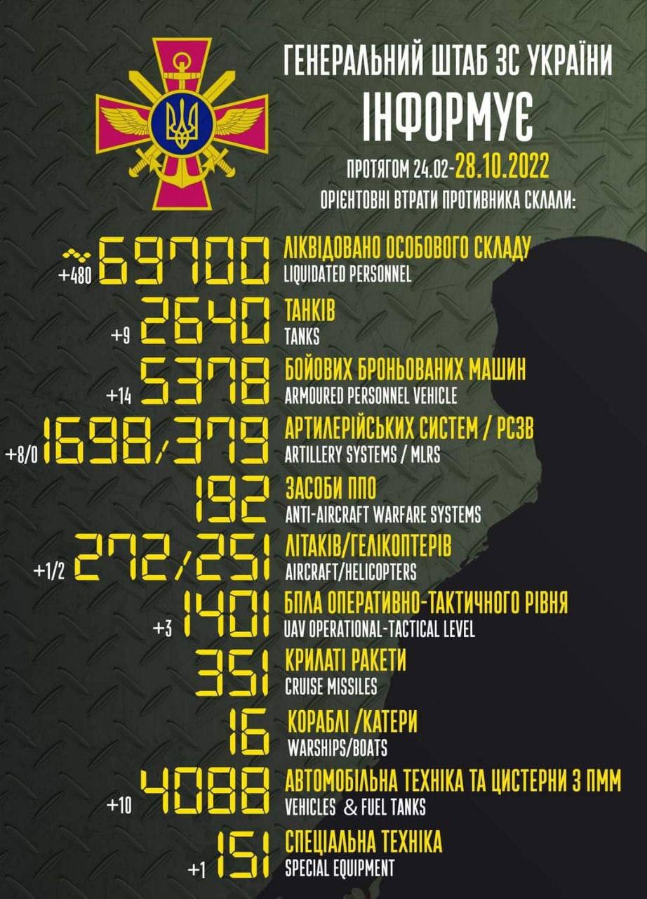 UPDATE Statul Major al Armatei Ucrainene a anunțat vineri pierderile provocate agresorului rus în 247 de zile de invazie. Potrivit Kievului, circa 70.000 de soldați ruși au fost uciși de la începutul războiului declanșat de Vladimir Putin.