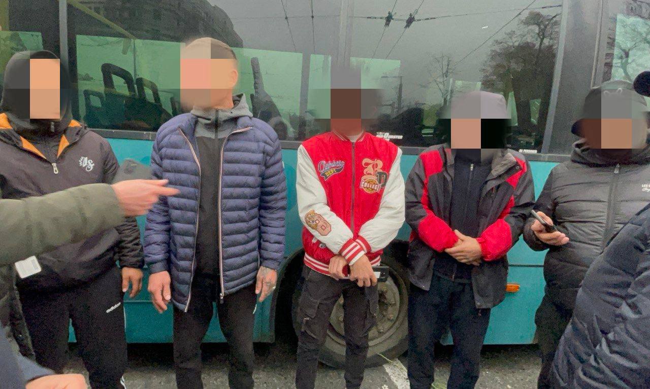 UPDATE Cinci bărbați, unii dintre ei cu antecedente penale, cu comportament dubios și aflați în vizorul poliției pentru huliganism, furt, jaf, consum de droguri și evadare din penitenciar au fost scoși din mulțime și escortați la sediul Poliției.