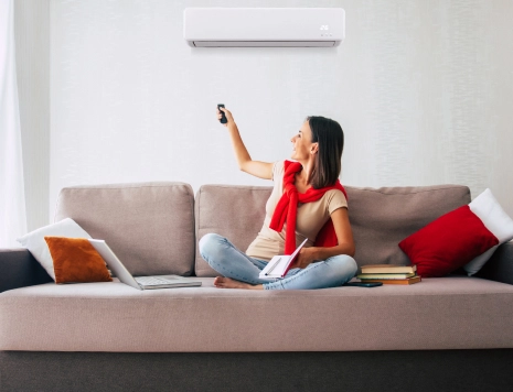 Zăpușeala de afară, din ultima perioadă, a adus-o pe această femeie la magazin. Este în căutarea celui mai potrivit aparat de aer condiționat, care să-i facă zilele mai răcoroase, ceva bun, dar și ieftin.