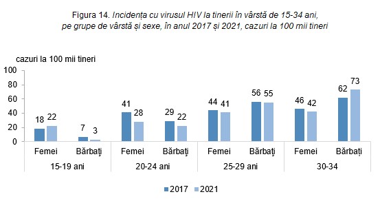 Astfel, numărul tinerilor în vârstă de 15-34 de ani infectați cu HIV a constituit 253 de persoane. Ponderea femeilor tinere infectate s-a micșorat de la 48,1% în anul 2017 până la 44,3% în anul 2021.