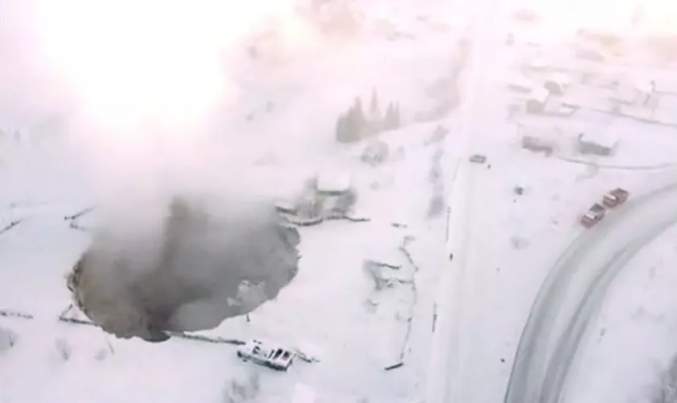 Un clip filmat de la nivelul solului arată cum mașinile continuă să treacă pe lângă ea în urma prăbușirii. O casă se clatină chiar pe margine în timp ce este aproape înghițită de crater.