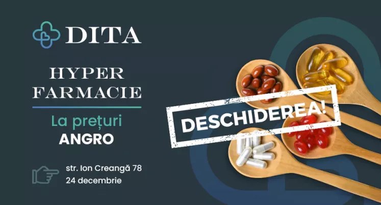 Rețeaua de Hyper Farmacii sub brandul DITA, cu prețuri de depozit, se extinde cu încă o locație în sectorul Buiucani al Capitalei, pe strada Ion Creangă, 78.