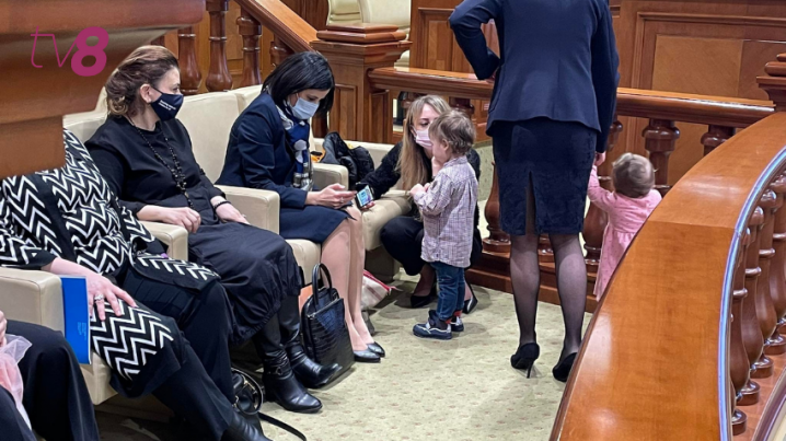 Motivul pentru care mai mulți legislatori și angajați ai Parlamentului au venit, astăzi, cu copiii lor la ședința în plen a fost pentru a susține un proiect de lege înaintat de deputații PAS întru susținerea familiilor cu copii mici.