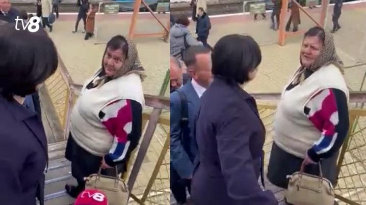 Prim-ministra a fost salutată de o localnică în timp ce urca scările unei pasarele de la gară. Natalia Gavrilița i-a răspuns amabil și chiar a întrebat-o ce mai face. „Ne chinuim cu sărăcia”, a răspuns femeia.
