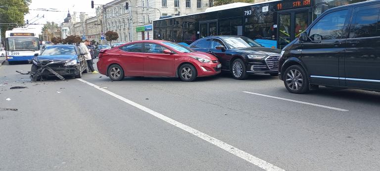 Trei mașini s-au ciocnit în lanț în Piața Marii Adunări Naționale. În accident a fost implicat și un automobil al ambasadei Qatar la Chișinău. În ultimul vehicul se afla doar șoferul.