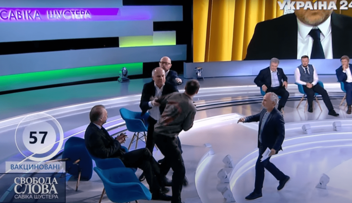 Încăierarea șocantă a izbucnit între parlamentarul Nestor Shufrych, de la partidul prorus „Pentru viață” – o platformă de opoziție din Ucraina, și jurnalistul Iuri Butusov, scrie Libertatea. Politicianul a fost atacat de colegul său de platou după ce a refuzat să îl condamne pe Vladimir Putin, pe fondul discuției despre comasarea de forțe militare de către Rusia, la granița cu Ucraina, pentru o potențială invazie. Shufrych a rămas însângerat după ce Butusov s-a apropiat de el și l-a lovit puternic în plină figură, în platou fiind prezenți atât fostul premier ucrainean Arseni Iațeniuk, cât și fostul președinte Petro Poroșenko.