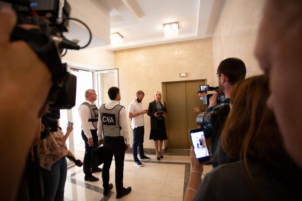 „Toată asta trebuie să fie transparent și deschis. Trebuie să se vadă ce se întâmplă, ce a fost găsit în biroul meu”, le-a declarat Marina Tauber jurnaliștilor înainte să urce împreună cu ofițerii CNA în biroul de la etajul 7 al clădirii Legislativului.