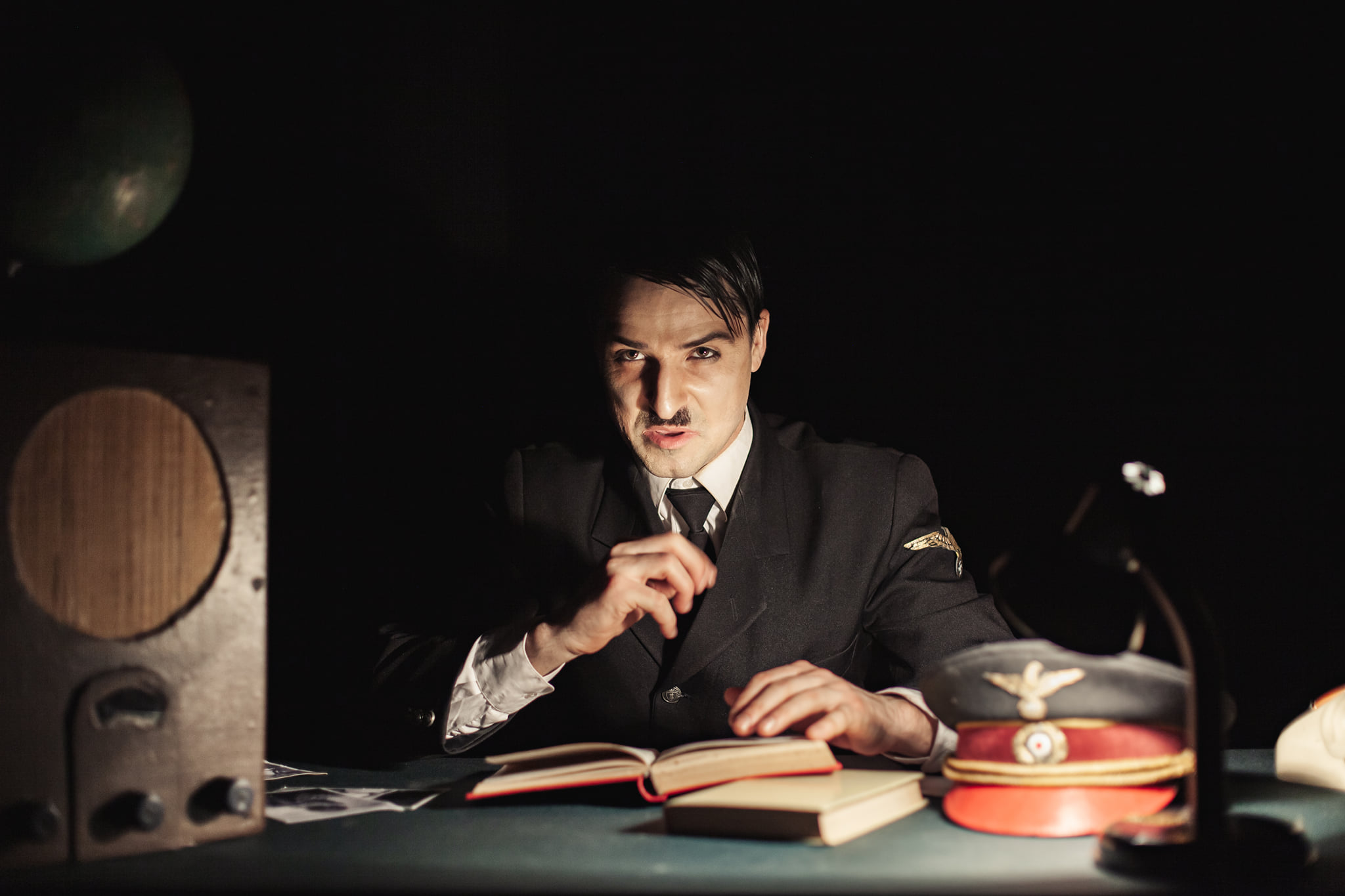 - „Adolf Hitler conduce Germania între 1933 – 1945. Un șir de factori, evenimente și idei îi creează personalitatea, transformându-se în figura care a declanşat al Doilea Război Mondial și a înfăptuit exterminarea etniilor în masă. În ultimele zile de război, retras în buncărul personal, își joacă actul final în totală intimitate. Obsedat încă de „complexul oedipian”, care i-a întunecat copilăria, poartă un dialog cu mama lui, unica fiinţă care a avut încredere în steaua lui și care îl alinta Adi. Fără nici o remușcare sau căință, nu realizează dezastrul pe care îl trăiește, nu-l sperie apropierea înfrângerii Germaniei sau apropierea propriului sfârşit, ci continuă să fie fascinat de propriul destin.”