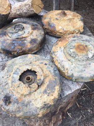 /VIDEO/ 4 mine antitanc, găsite într-o fântână de la Sânești de o echipă de muncitori. Le-au dus acasă la unul din ei!