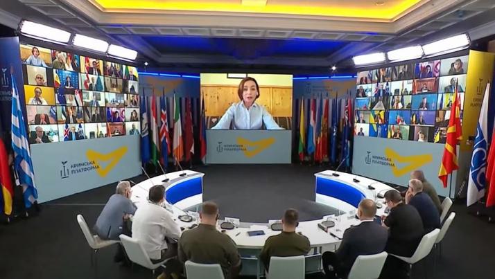 Președinta Republicii Moldova, Maia Sandu, participă marți, 23 august, la cea de-a doua ediție a Summitului „Platformei Crimeea”, desfășurat la Kiev. Aceasta este prezentă la eveniment în regim online. Șefa statului a declarat că Republica Moldova este o țară în care se respectă dreptul internațional și de aceea, țara noastră reiterează „sprijinul pentru independența, suveranitatea și integritatea teritorială a Ucrainei, incluzând Crimeea”.