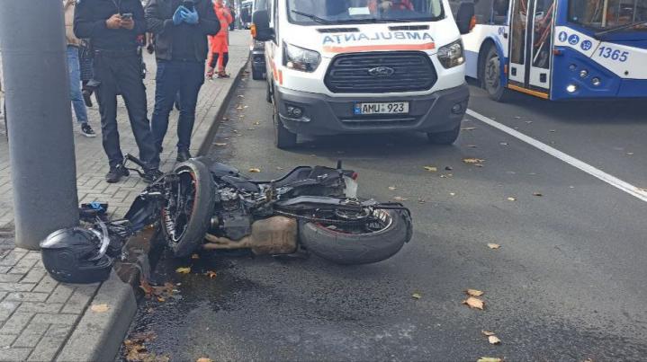 Potrivit ofițerului de presă a Direcției de Poliție a municipiului Chișinău, Natalia Stati, în urma impactului, motocicleta s-a lovit într-un pilon.