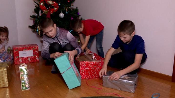 Cu multe emoții, zâmbitori, dar nerăbdători să-și țină cadourile. Așa i-am găsit pe cei cinci micuți din familia Rotaru.