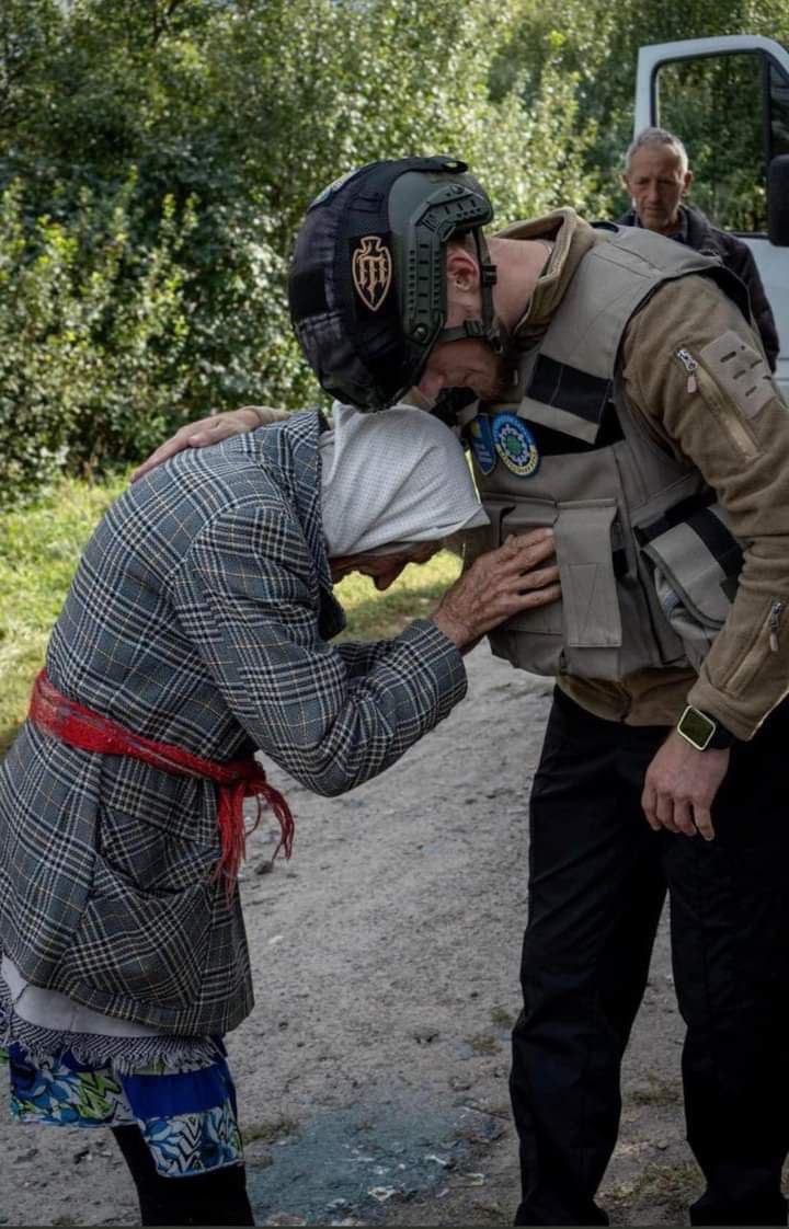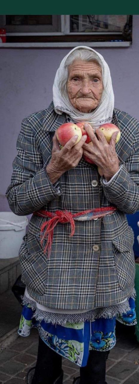 „La cei 92 de ani ai săi, bunica Paraska a trăit un alt război mondial, Ea mulțumește soldaților noștri”, notează jurnalistul Andri Țaplienko. După o perioadă grea, trăită sub stăpânirea armatei ruse, din puținul pe care îl are, femeia oferă câteva mere unuia dintre militarii ucraineni, pe care îl îmbrățișează.
