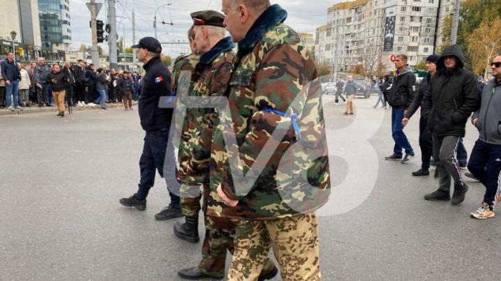 /VIDEO/ Foști angajați ai forțelor de ordine au venit la protest cu panglici albastre la mâini. Ce spune Poliția