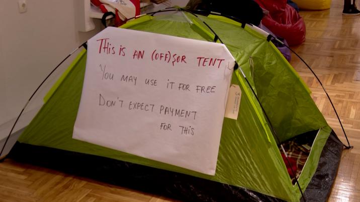 La expoziție a fost adus și un cort, care simbolizează protestele organizate de Partidul Șor, la care oamenii erau plătiți și aduși organizat.