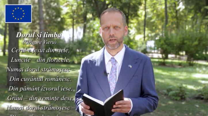 „Limba natală te face să te simți acasă oriunde”. De Ziua Limbii Române, ambasadorul UE la Chișinău recită „Dorul și limba”