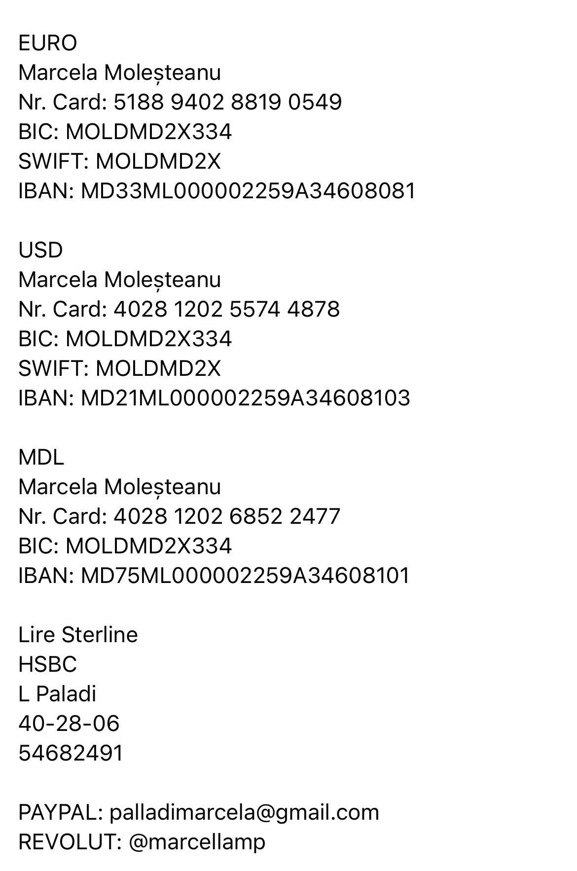 Datele bancare pentru cei care vor și pot să o ajute pe Marcela Paladi: