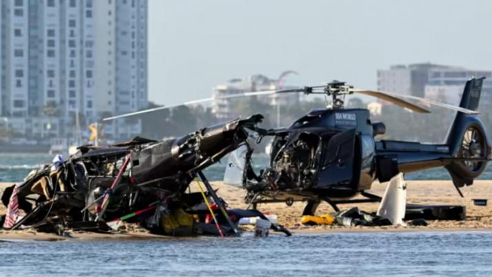 În imaginile difuzate de televiziuni pot fi văzute rotoarele unui elicopter pe un banc de nisip în apropierea ţărmului Coastei de Aurd, în sud-estul regiunii Queensland. În apropiere, un elicopter este răsturnat în nisip, potrivit canalului public ABC.
