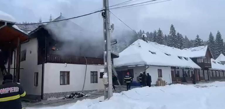 Clădirea nu este destinată cazării, astfel încât nu s-a impus evacuarea de persoane. Pompierii lucrează pentru lichidarea incendiului.
