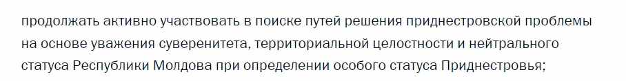 Ce prevedea acesta în privința Transnistriei: „Pentru a implementa în mod consecvent politica externă a Federației Ruse, care face posibilă asigurarea intereselor sale naționale pe baza principiilor pragmatismului, deschiderii și abordării multi-vectorale în contextul formării unui nou sistem policentric de relații internaționale, decid: 1. Ministerului Afacerilor Externe al Federației Ruse, împreună cu alte organisme executive federale: d) în relațiile cu statele membre ale Comunității Statelor Independente: să continue participarea activă la căutarea modalităților de soluționare a problemei transnistrene bazate pe respectarea suveranității, integrității teritoriale și a statutului neutru al Republicii Moldova în stabilirea statutului special al Transnistriei”.