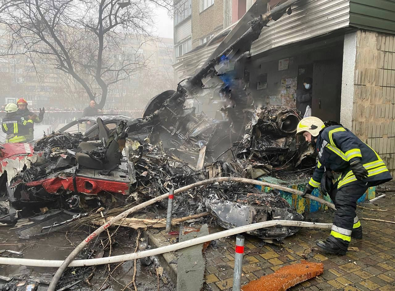 Un elicopter a căzut, pe 18 ianuarie, lângă o grădiniță și un bloc de locuințe din Brovarî, în regiunea Kiev, provocând un incendiu. La momentul tragediei, copiii și angajații instituției se aflau în grădiniță. Optsprezece persoane, printre care ministrul de Interne al Ucrainei, alți oficiali de rang înalt din minister și trei copii, au fost uciși.