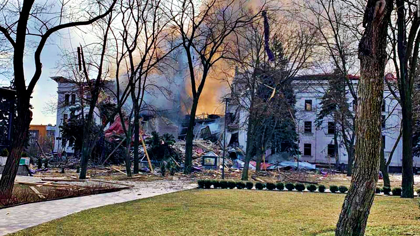 Clădirea Teatrului Dramatic din Mariupol, unde erau adăpostiți între 1.000 și 1.200 de oameni, a fost bombardată de trupele ruse, pe 16 martie. Mulți dintre cei care s-au ascuns de bombardamente în teatru au reușit să supraviețuiască.