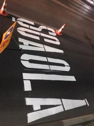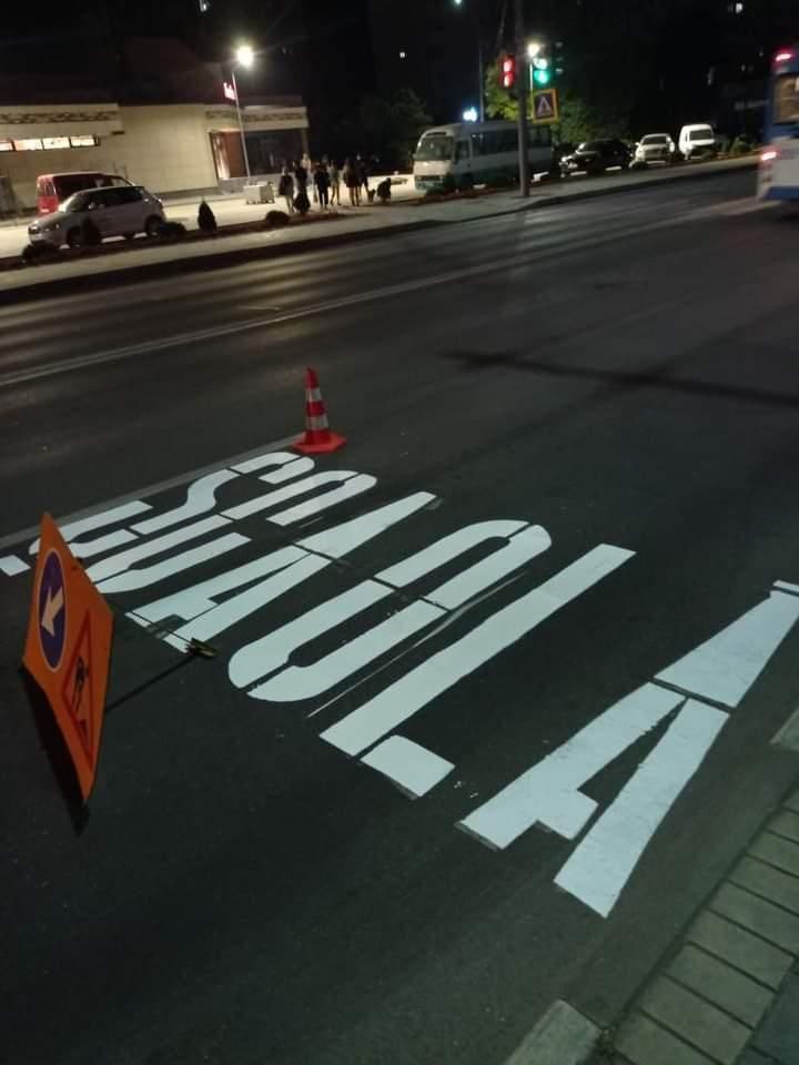 Ulterior, în noaptea de 23 august, serviciile specializate și-au asumat să-și corecteze greșeala. Respectiv, în grabă, au luat o vopsea de culoare închisă și au colorat cuvântul scris greșit, notează un canal de Telegram.