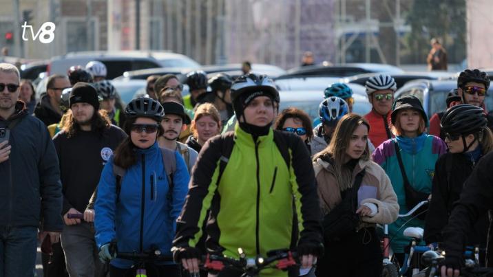 Cicliștii adunați în scuarul Liceului „Gheorghe Asachi” din Capitală au instalat monumentul „bicicletei albe”. Mai exact, o bicicletă a fost legată cu lanțuri de un pilon. Ulterior, manifestanții au pornit la marș pe două roți, dar și pe jos, cu tamburine și tobe în mâini.