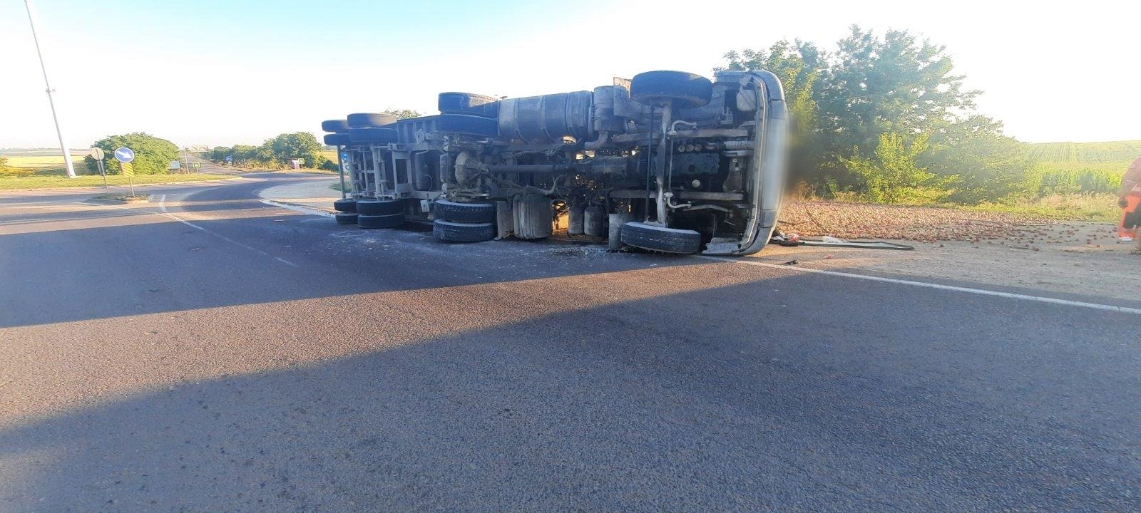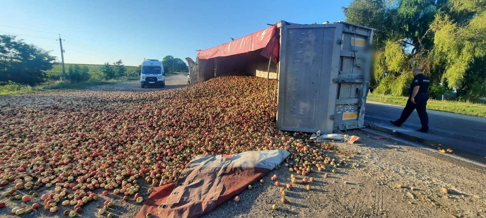 Un camion plin cu mere s-a răsturnat la Soroca, în adiacentul localității Șolcani. Potrivit Poliției, la volanul camionului se afla un bărbat de 37 de ani.
