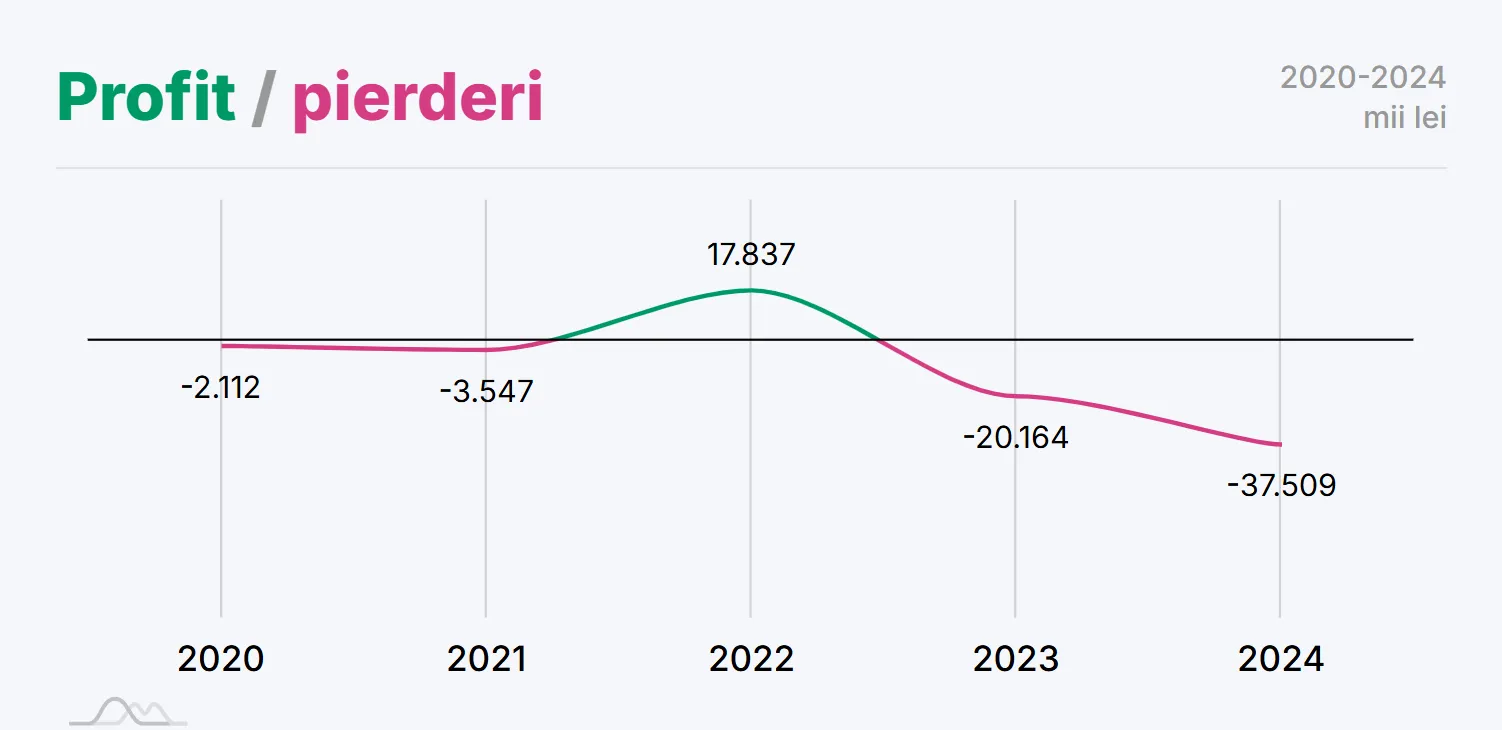 Graficul privind evoluția financiară a arenei arată o pierdere constantă între 2019 și 2021, urmată de un an profitabil în 2022 (+17,8 milioane de lei). 2023 a adus o cădere drastică, cu pierderi de peste 20 de milioane de lei, iar în 2024, arena a intrat și mai mult pe minus.
