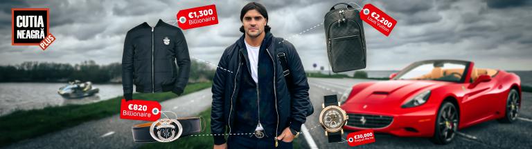 În total, doar în acest video, Țuțu poartă pe el haine și accesorii de peste 33 de mii de euro, sumă echivalentă cu salariul mediu al unui profesor pentru mai bine de șase ani! Împreună cu mașina, costul acestor bunuri depășește trei milioane și jumătate de lei.