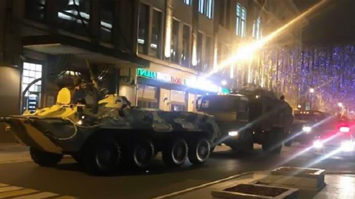 Pe rețelele de socializare au apărut imagini cu mai multe blindate pe străzile din Moscova. Unele au fost filmate în apropiere de Duma de Stat, camera inferioară a Parlamentului Rus.