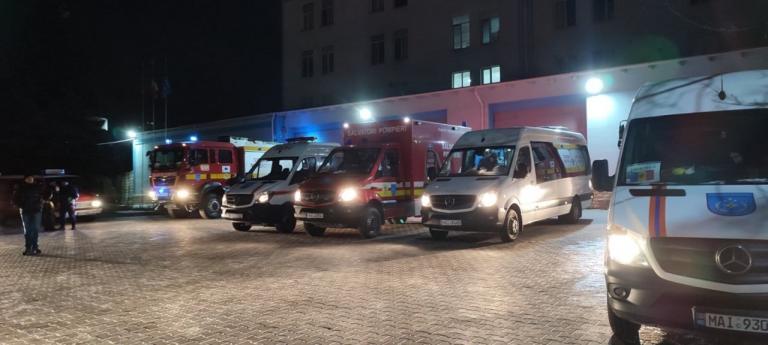 Cele 12 autospeciale, cei 55 de salvatori și doi câini de căutare au trecut hotarul în jurul orei 04.45 prin punctul de trecere a frontierei Giurgiulești-Galați.