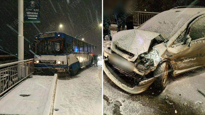 /VIDEO/ Zăpada vine cu noi daune! Un troleibuz și trei mașini, avariate la Tiraspol. O femeie a fost rănită