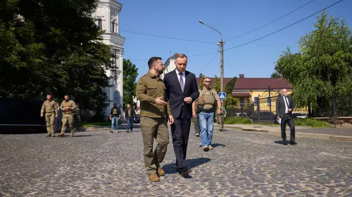 Duda a sugerat, de asemenea, că, în viitor, Polonia ar putea dona întreaga sa flotă de avioane de vânătoare MiG-29 Ucrainei, după ce Forțele Aeriene poloneze vor achiziționa noi avioane pentru a compensa aceste pierderi. În timpul vizitei lui Zelenski la Varșovia, Polonia și Ucraina au semnat un memorandum comun pentru reconstrucția zonelor din Ucraina afectate de război, precum și pentru producția de proiectile de tancuri de 125 mm.