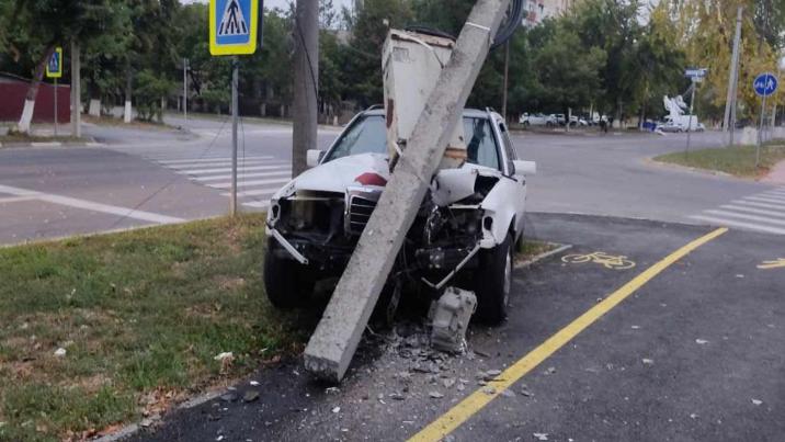 /FOTO/ A urcat beat la volan și a provocat un accident rutier: Un tânăr din Ungheni s-a izbit cu mașina de un pilon