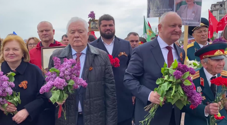 Sfidează legea? Mai multe persoane, printre care și Igor Dodon, și-au prins în piept panglica bicoloră de 9 mai