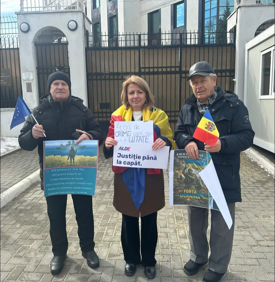 Iar membri ai Alianței Liberalilor și Democraților pentru Europa (ALDE), în frunte cu Arina Spătaru, au participat la protestul organizat în fața Ambasadei Rusiei la Chișinău. Într-un mesaj pe pagina de Facebook a partidului se arată: