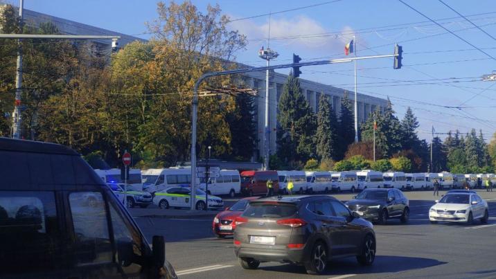 Un protest al șoferilor de pe rutele interurbane este în plină desfășurare în Piața Marii Adunări Naționale. Ca de obicei, transportatorii vin cu tot cu microbuze. Aceștia sunt în dezacord cu modificările aduse Codului Transporturilor Rutiere, pregătite de Ministerul Infrastructurii și Dezvoltării Regionale.