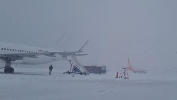 Angajații de pe aerodrom și toate utilajele de deszăpezire/curățire a aerodromului lucrează încontinuu, pentru menținerea pistei la condiții posibile de decolare/aterizare.