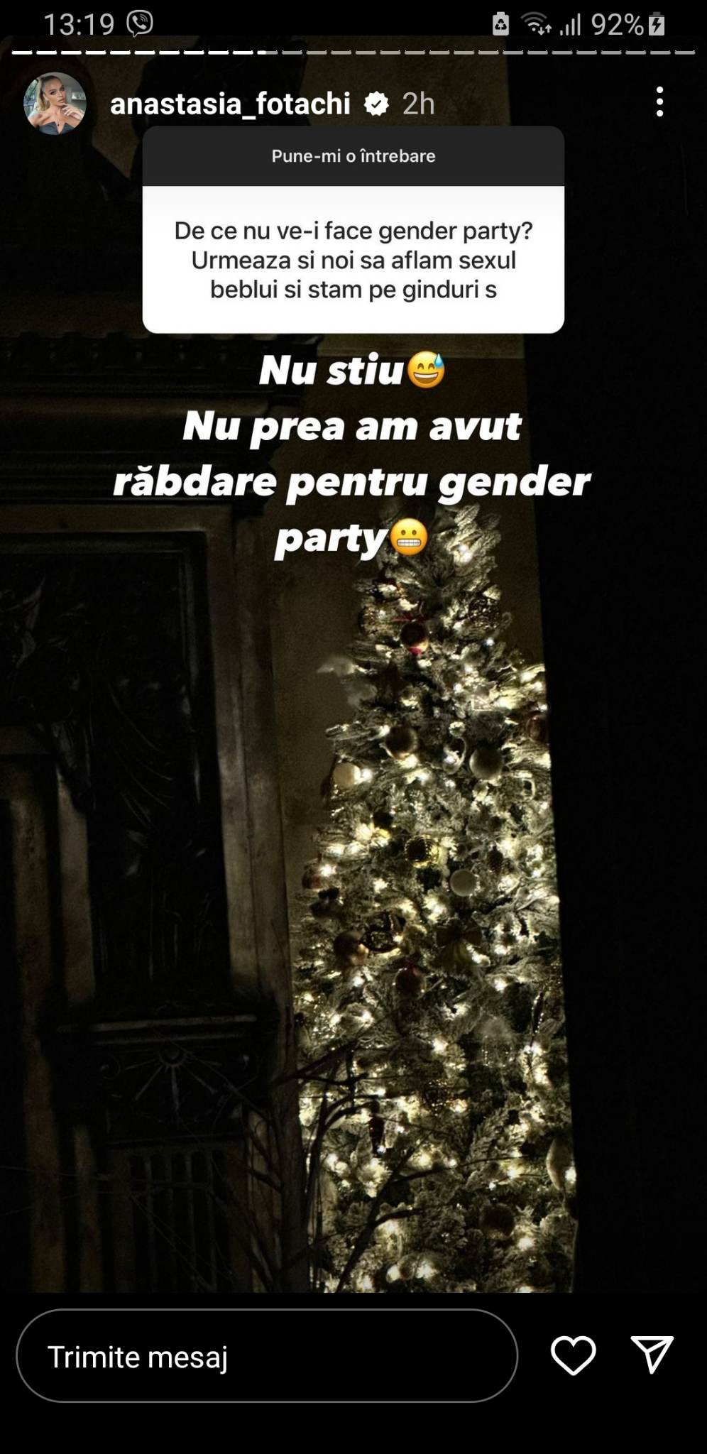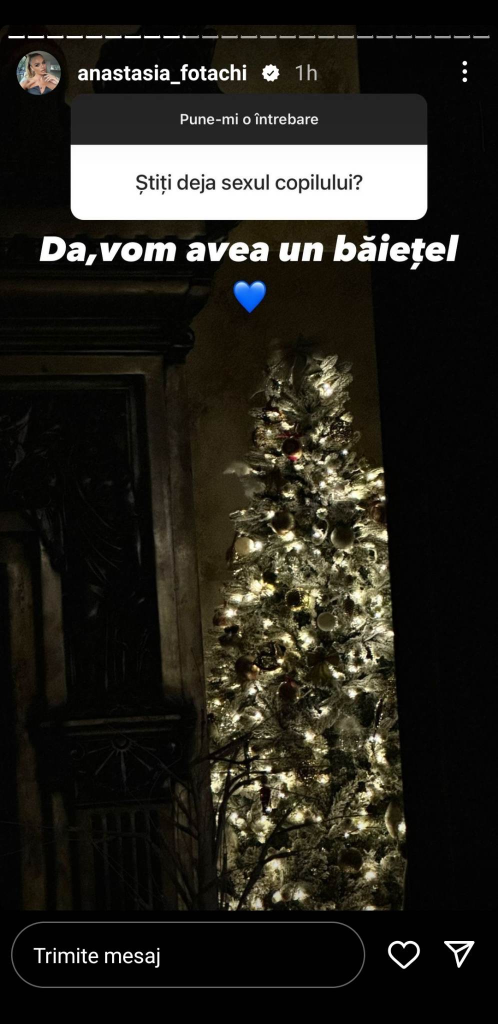 Modelul Anastasia Fotachi, care a anunțat în ajun de Anul Nou că este însărcinată, așteaptă un băiețel. Dezvăluirea a fost făcută pe pagina sa de Instagram. Întrebată de ce nu a așteptat să facă un gender party pentru a afla sexul copilului, modelul a răspuns că nu a avut răbdare.