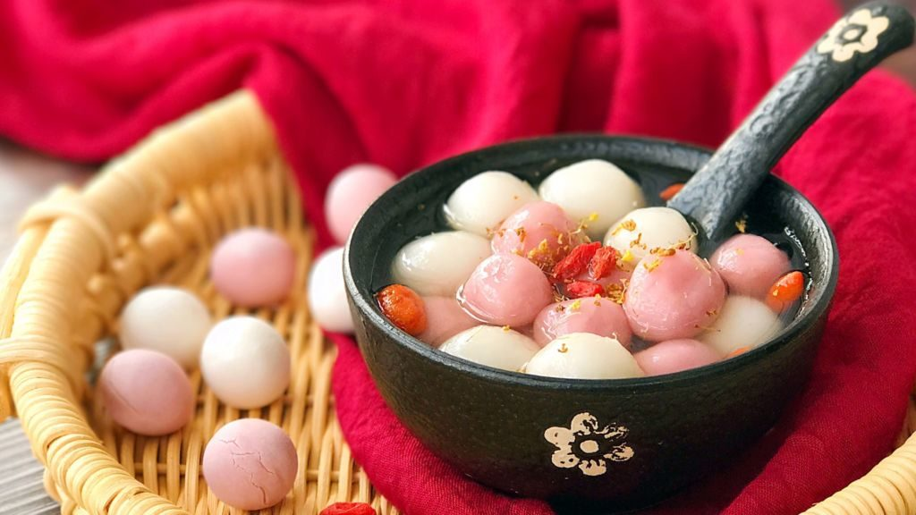Găluștele de orez umplute cu pastă de fasole dulce sau pastă de semințe de susan și zahăr, nuci sau fructe, numite Tang yuan, se mănâncă de Anul Nou chinezesc (16 februarie). Sunt fierte și apoi servite în sirop aromat cu ghimbir. De asemenea, sunt servite la nunți chinezești, solstițiul de iarnă și alte zile de sărbătoare.