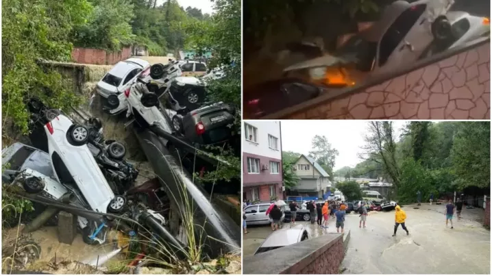 O ploaie torențială căzută duminică de dimineață la Soci, în Rusia, a devastat mai multe străzi și a făcut praf zeci de mașini, imaginile publicate pe rețelele de socializare și pe portalurile rusești de știri devenind virale, scrie Libertatea.ro