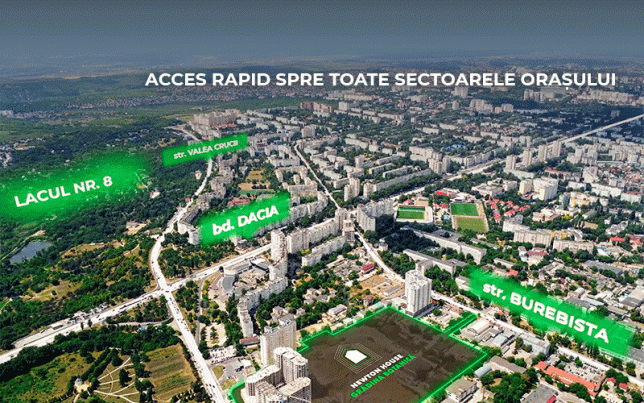 Și dacă te îndrepți spre Sculeni? Te despart doar 13 km și aproximativ 18 minute. La doar 20 de minute distanță se află primul complex NEWTON HOUSE de la Buiucani, unde locatarii deja trăiesc. Până la piața din Ciocana poți ajunge în doar 15 minute, sau spre cercul din Râșcani, la care ajungi în cel mult 20 de minute, în funcție de trafic.