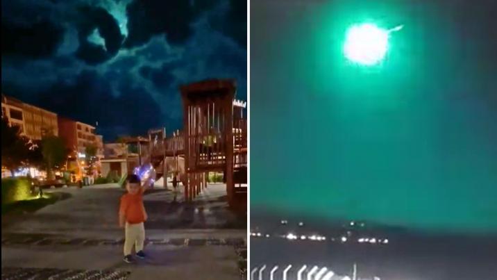Imagini unice filmate în Turcia. Un meteorit a luminat cerul și l-a colorat în verde, în timp ce cădea cu viteză spre pământ.