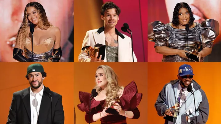 Adele a câştigat un premiu Grammy la categoria „cea mai bună interpretare pop solo” cu single-ul „Easy on Me", iar Bad Bunny s-a impus la categoria "cel mai bun album de muzică urbană" cu materialul discografic "Un Verano Sin Ti", un mare succes comercial al anului 2022. Starul portorican a deschis gala de duminică seară cu un microrecital plin de energie, susţinut pe ritmuri latino.