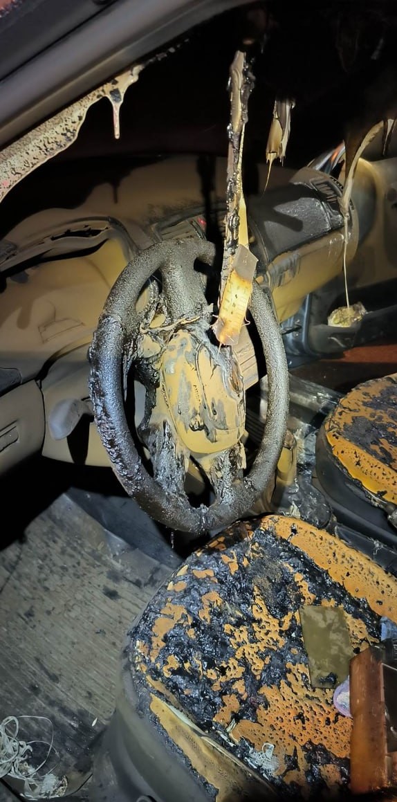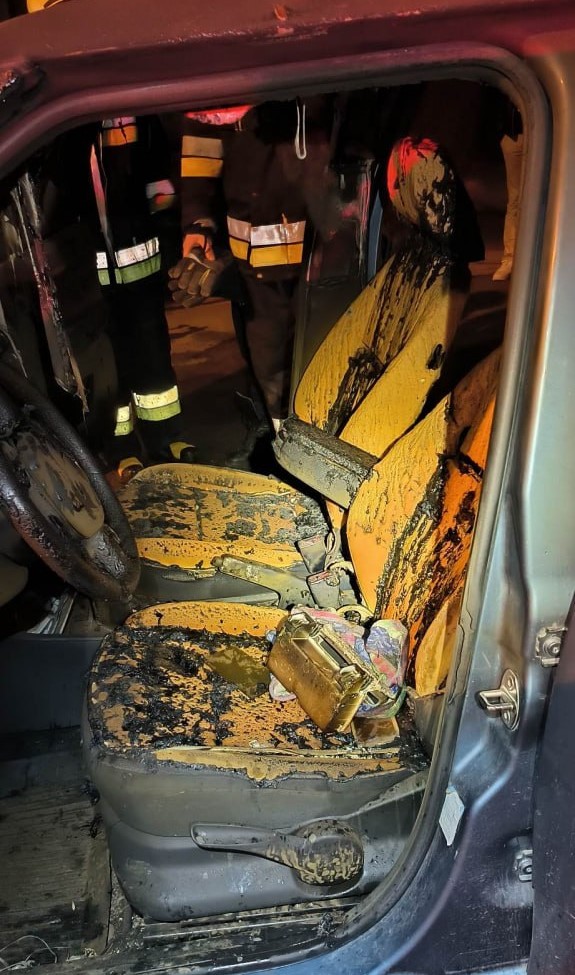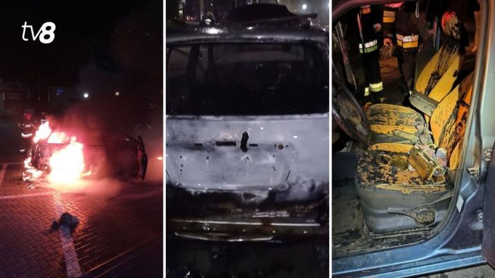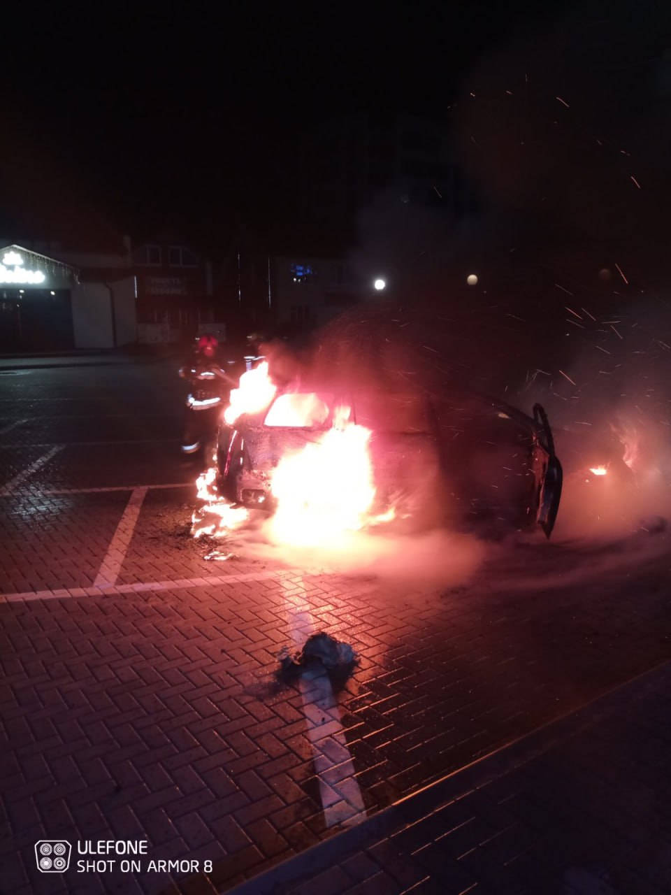 Prima mașină de marca Toyota Corolla a fost mistuită de flăcări. Bărbatul a suferit arsuri de gradul II la membrele superioare și a fost preluat de serviciul de asistență medicală, dar a refuzat spitalizarea. Totul s-a întâmplat în jurul orei 01:48.