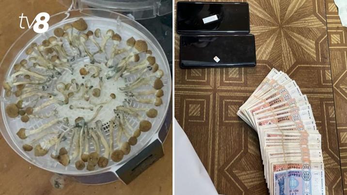 La celălalt domiciliu, au fost descoperite 21 de cutii de plastic în care se cultivau ciuperci cu efect halucinogen, alături de mai multe pachete conținând aceste ciuperci.