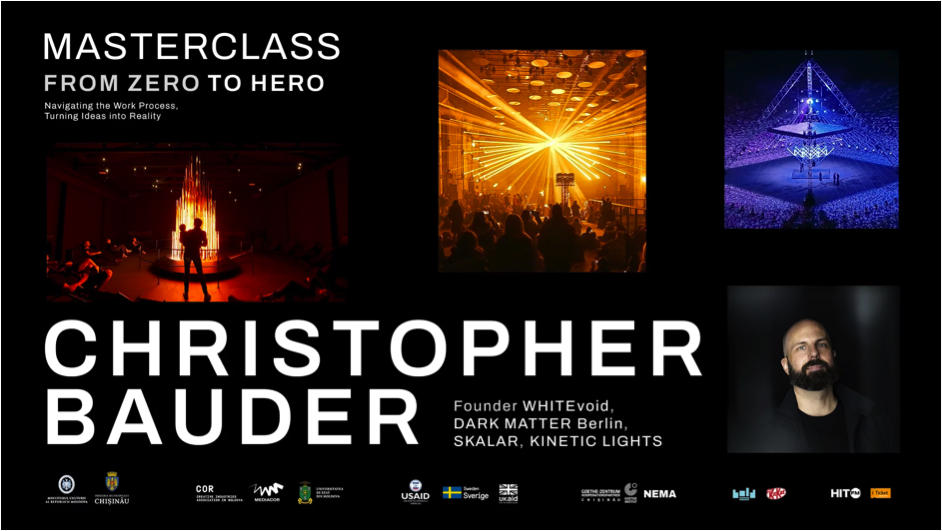 Descoperă o oportunitate de neegalat în lumea creativității! Pe 18 august, ai șansa unică să înveți de la maestrul Christopher Bauder, fondatorul la WHITEvoid, DARK MATTER Berlin, KINETIC LIGHTS, SKALAR și Deep Web.